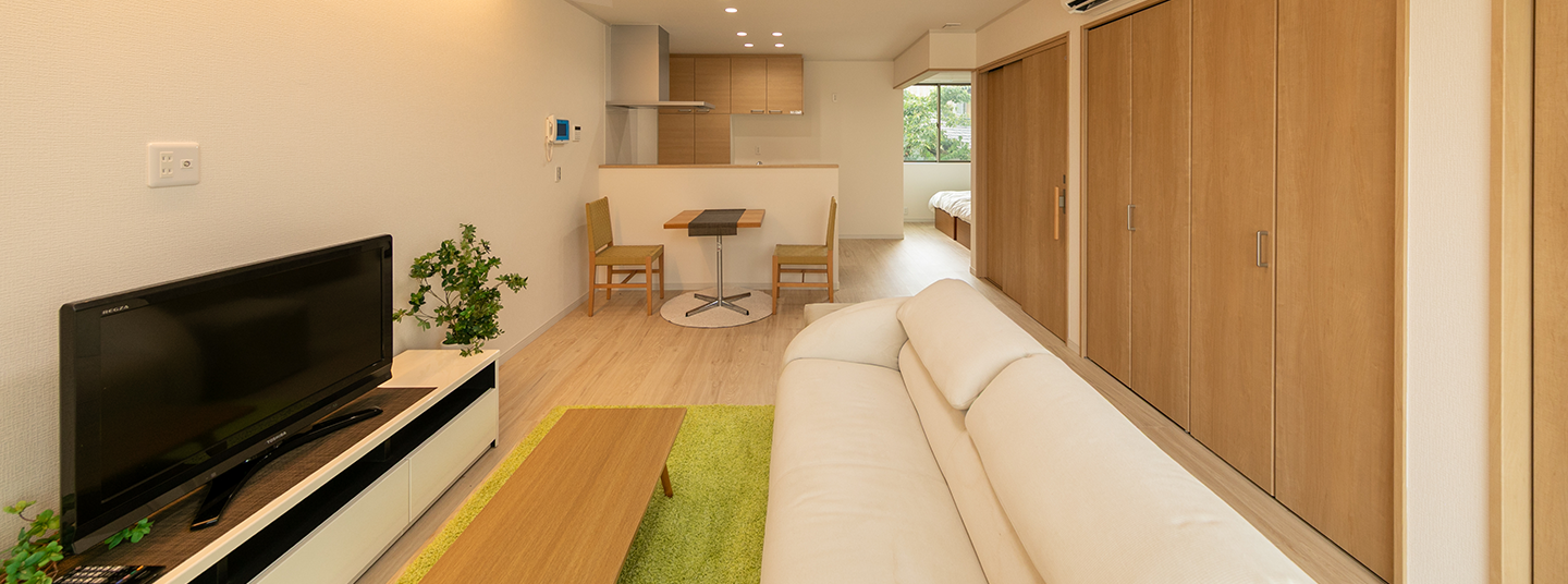 ご夫婦お二人での入居を想定し、 ゆったりと過ごせる開放感ある生活空間をご用意しています。ガーデン越しに他の居住棟が見え、 新しい友人達とコミュニケーションが取れるように大きなテラス窓と縁側にウッドデッキを設けています。 思い思いのインテリアを楽しみながら自分達だけの上質な時間をお過ごしいただけます。